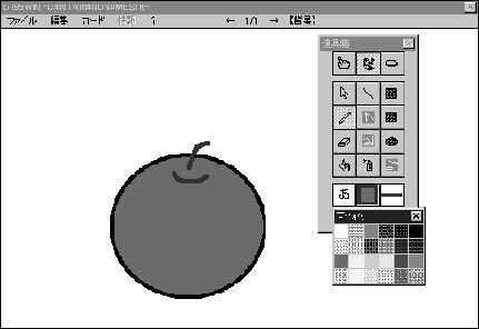 描画はKiT95オーサリングソフト内でも可能だが,他のグラフィックソフトで描画した絵を,カット・アンド・ペーストして作品に貼り付けることも可能である。また,文字表示についても,他のテキストエディタで作成した文書を利用することができる。