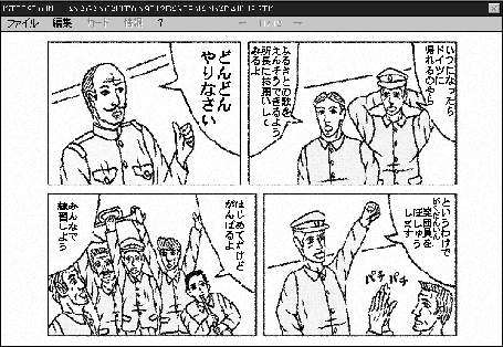 一方,KiTは1989年から商用ネットワークであるPC−VANにあるSIGのSTS(教育とソフト)を中心に利用された教材開発用の言語仕様であり,そのプレーヤーやエディタが加藤らによって開発され,無償で教育現場に提供されてきた。当初からKiTは,マウスのみで操作することができるため,操作方法を詳しく説明する必要がなく,コンピュータに精通していない教師でも授業で活用できるという特長を持っていた。現在では,KiTで作成された数百の自作教材が商用ネットワークに登録され,さらに,雑誌等を通じて紹介されるなどして,実際に教育現場で利用されている。また,NEC PC98用/FMR・FM-TOWNS用などのエグゼキュータとエディタがあり,これらの機種での互換性を保証している。