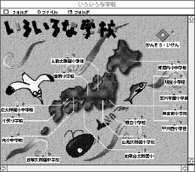 この他,玉川学園小学部の子どもたちが国語で方言調べをすることになり,いくつかの「質問」をあらかじめハイパーカードで作成して,全国の友達になげかけた事例では,阿歴内の中学一年生が,北海道の方言の意味をメールに書くだけでなく,自分たちでマイクに向かいその発音・発声のしかたも添付して,玉川学園の子どもたちに返事を行っている。このように,デジタルカメラで撮影した画像ファイルや,音声ファイルも子どもたちが簡単に扱えるようになっているのである。