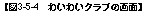 (b)『子どものコミュニティ』第2ステージから「わいわいクラブ」は,会員登録,質問箱,ライブラリ,みんなでワイワイなどいくつかの部屋に分けられた。中でもフリートーキングの部屋である「みんなでワイワイ」は,連日多数の書き込みがあり,現在も活発なコミュニケーションが行われている。内容は多様であり,小学生,中学生が混在したネットワーク上のコミュニティが形成されている。第3ステージからは,子どもたちの意見により,さらに「アニメルーム」「こだわりの○○探索」「撮り物競争」などの部屋が加わっている【図3-5-4】。 |