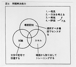 ところで、情報教育の目標のように、個人の判断力の育成のような長期的展望をもった目標の場合はどのように考えればよいのであろうか。このような教育は、いわゆる内的な変容をねらったものであり、1時間のトレーニングで効果の上がるものではない。情報教育の目標は、先にも述べたように「コンピュータの技術が発展し、本格的な情報化社会がきたとき、扱われている情報そのものの信頼性を自分で判断できたり、あるいはどうすれば、その情報が自分の問題解決に使えるかという知恵をもつこと」である。これは、「判断力」あるいは「問題解決能力」といったもので、広い意味での「技術」ということになる。「判断力」育成のカリキュラムは、それを構成している要素を全部ばらばらに分解して一つ一つ訓練したり、その原理を解明して教え込むだけでは、育成できない。これらを支えているのは、「知識」と、「技能」に加えて、「場面認知力」であろう。必要場面で、自分が今まで経験してきたものをうまく引き出して、それを適用することができる、そういう能力は、「体が覚える」ほど、同じような場面で幾度も試行錯誤を繰り返してはじめて体得できるものである。