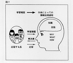 1.情報教育では、子ども達が、与えられた課題を自分の問題としてとらえ場面の中で体験的に学習しなければならない。「情報を処理する能力」ができるとは、例えていえば、「自分の頭の中に自分で処理方法のプログラムを作る」ということである。教師の仕事は「自分で問題をとらえてくれるように、あるいは、自分で自分の情報処理活動をモニターするような場面を意識的に学習場面の中に作りだしてやる」ことである。2.情報処理活動を意識化させるためには、問題解決に「必要な情報」と「道具」をさりげなく用意する必要がある。もちろん、子どもが利用できるような環境を用意して、ちょっとした道具の使い方を教師自身が示すことが必要である。しかし、子供にそれをまねするよう指示したら失敗である。道具の使い方を明示すれば、学習者はすぐ受け身になり、処理方法は単に知識として伝達されるだけで問題解決能力にはつながらない。技術として体得するためには子ども自らが失敗しながら自分で評価し、自ら修正して学ぶように工夫する必要がある。