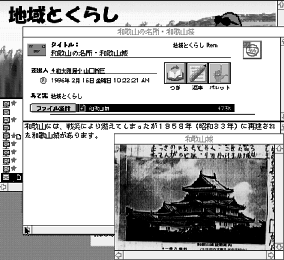 「地域とくらし」では酸性雨や渇水調査,方言調べ,米についての情報交換,各地域について調べた内容を写真入りで紹介する【図3-5-3】ことなど多様な活動が活発に行われている。和歌山大学附属小では,ここに報告した和歌山についての情報をまとめ,WWWサーバで提供することも行われた。